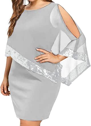 Aihihe Plus Size Dress For Womens Sequined Overlay Party Dress Chiffon Poncho Slit Sleeve Pencil Cocktail Mini Dress Clothing Shoes Jewelry Amazon Com