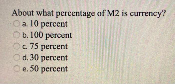 Solved About What Percentage Of M2 Is Currency A 10 Chegg Com