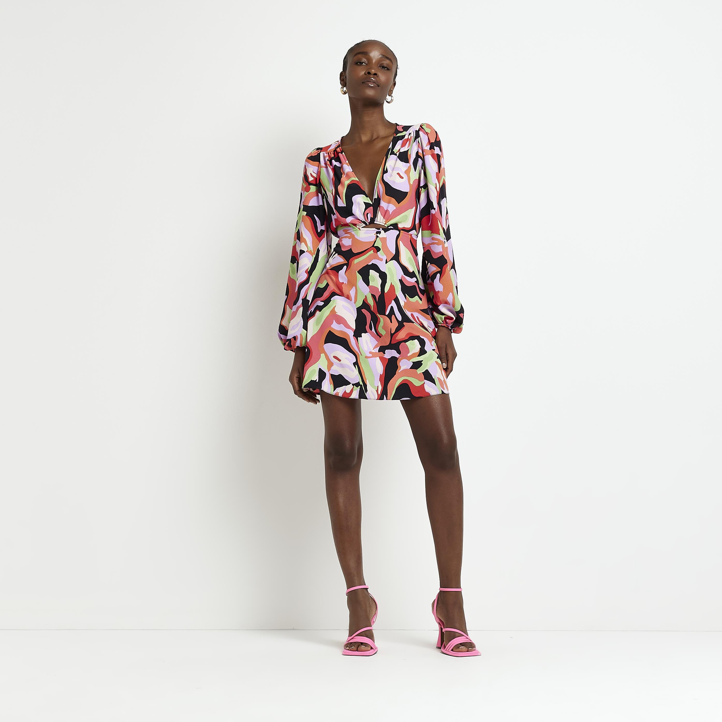 River Island Orange Print Cut Out Mini Dress Lyst Uk